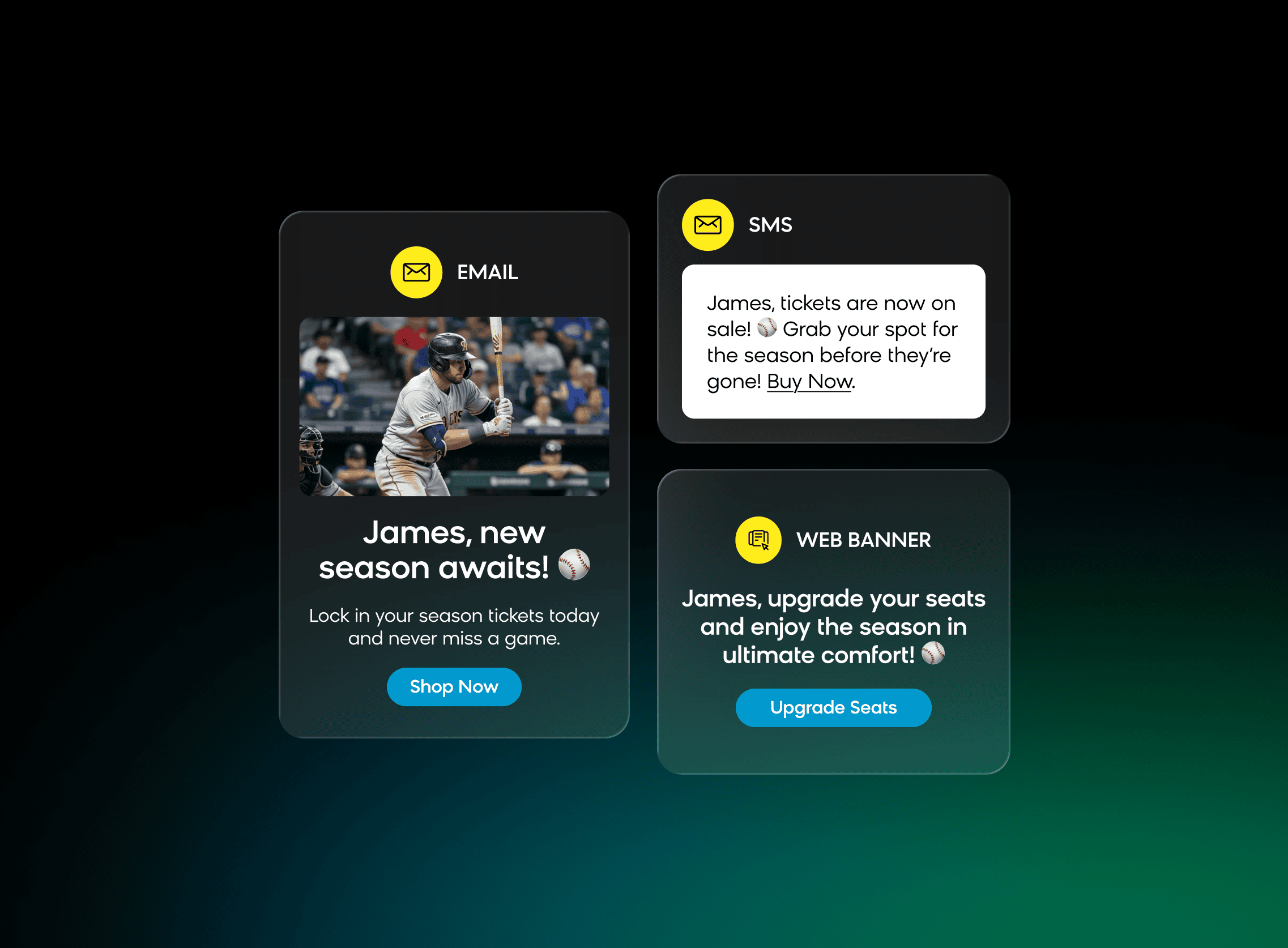 Unify all your fan data in a single platform. From ticket purchases to merchandise preferences, get a complete view of each supporter, and use this data to power relevant marketing content across email, SMS, web, and app.