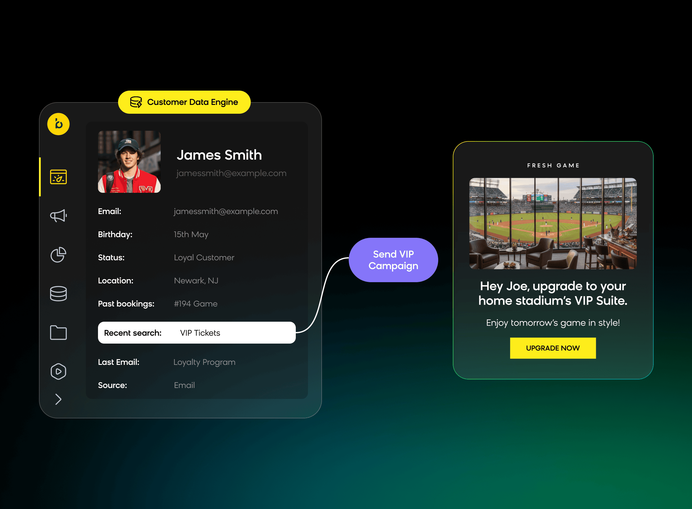 - Maximize revenue – identify fans for VIP upgrades, cross-sell memberships, or upsell merchandise bundles.
