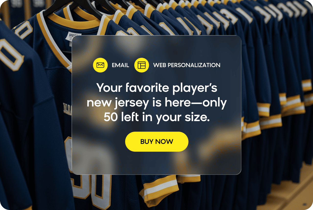 With sub-millisecond response rates, Loomi AI enables real-time personalization before, during, and after games. Instantly trigger relevant communications based on scores, plays, or fan actions and watch your organization’s engagement skyrocket.