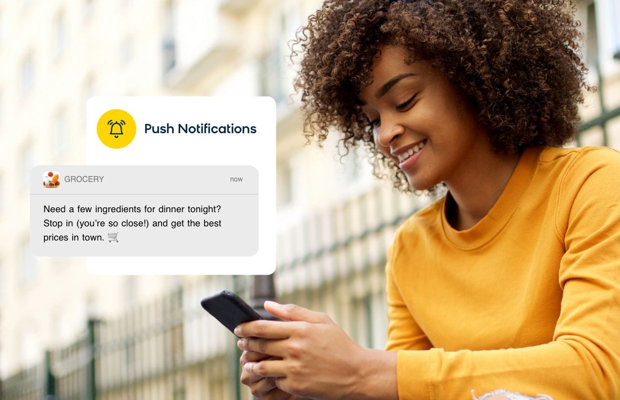 Push notifications really shine when used in timely, hyper-relevant mobile marketing campaigns. Informative messages, location-based marketing campaigns, and personalized recommendations are great ways to use this channel effectively. And these types of focused campaigns are simple to sync with your overall strategy.